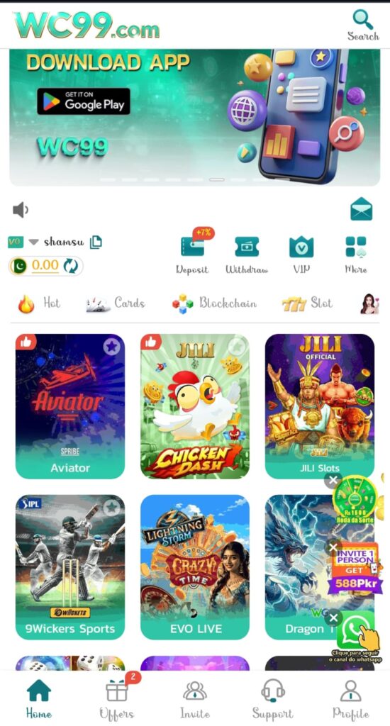 Getting started with WC99 is very simple. You can visit the official website or download the WC99 app on your phone. After that, you’ll need to create an account by filling in some basic details. Once you’re logged in, you can choose your favorite game and start playing right away.
